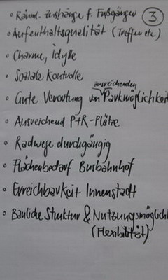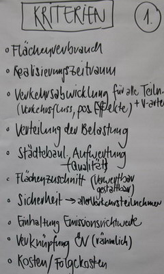 Die Teilnehmer des Runden Tischs sammeln Bewertungskriterien, die gemeinsam zur Beurteilung der unterschiedlichen Planungen herangezogen werden sollten.