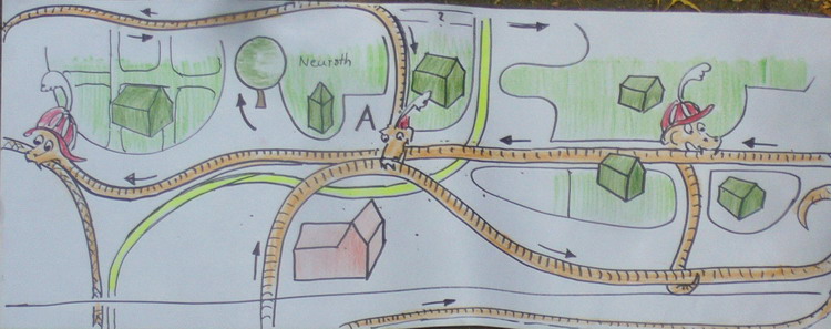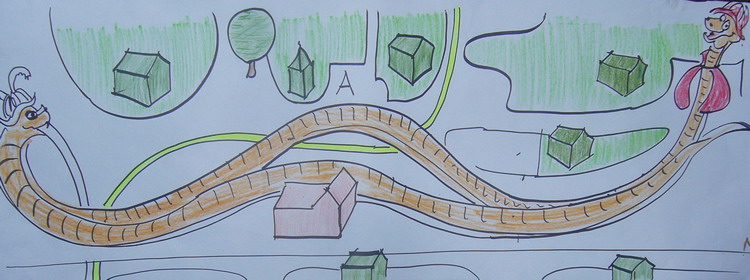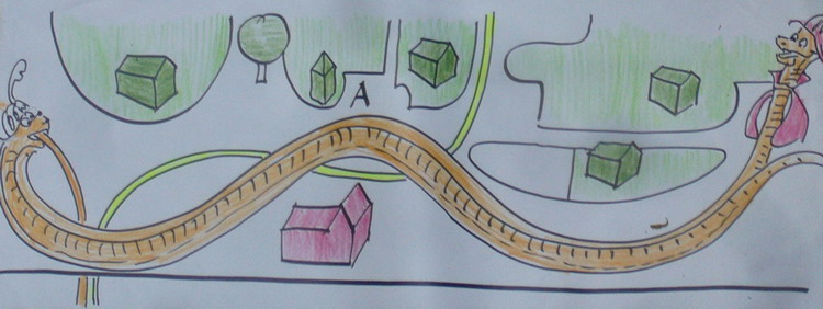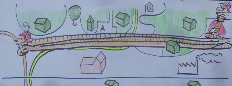 Die Schlängel-Schlange: möchte nicht stören und macht deshalb einen großen Bogen um die Wohngebiete