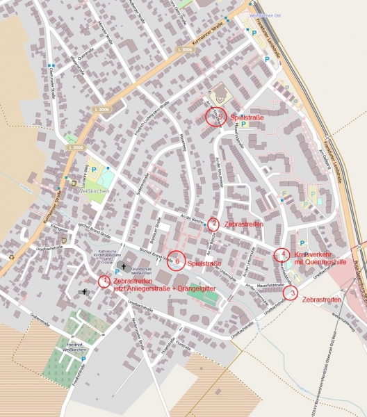 Der Schulweg zur GS Weisskirchen ist schon seeehr lange Thema.Sicher hat der ein oder andere sich über die großen Pappkinder mit Reflektoren gewundert; war mal ‘ne Aktion vom damaligen Elternbeirat, da auch damals schon wenigstens Zebrastreifen angedacht waren – aber abgeklehnt wurden aus den bekannten Gründen.