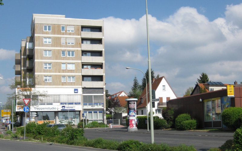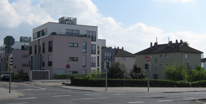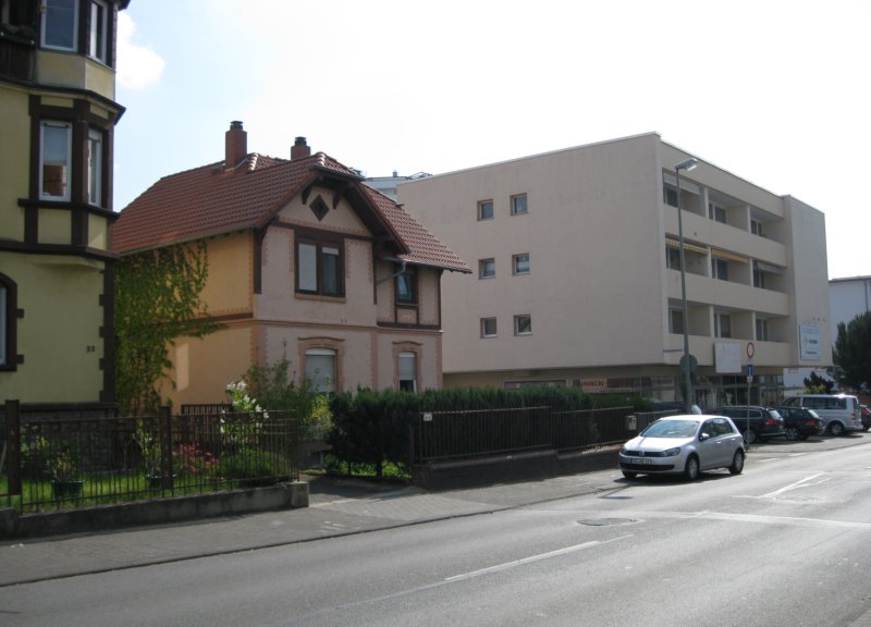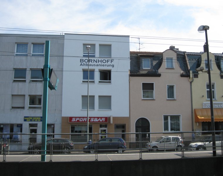 Hier (Eschersheimer-/Hügelstraße) fragt man sich, ob das Schild nicht am falschen Haus ist.